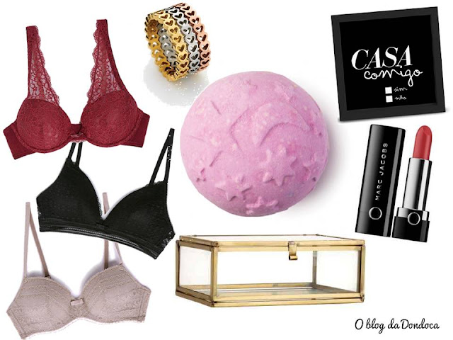 Lembro-me logo de lingerie. É um presente pessoal, bem intimo e que demonstra o quão bem conhecemos a outra pessoa. Seleccionei três modelos: este // este // este